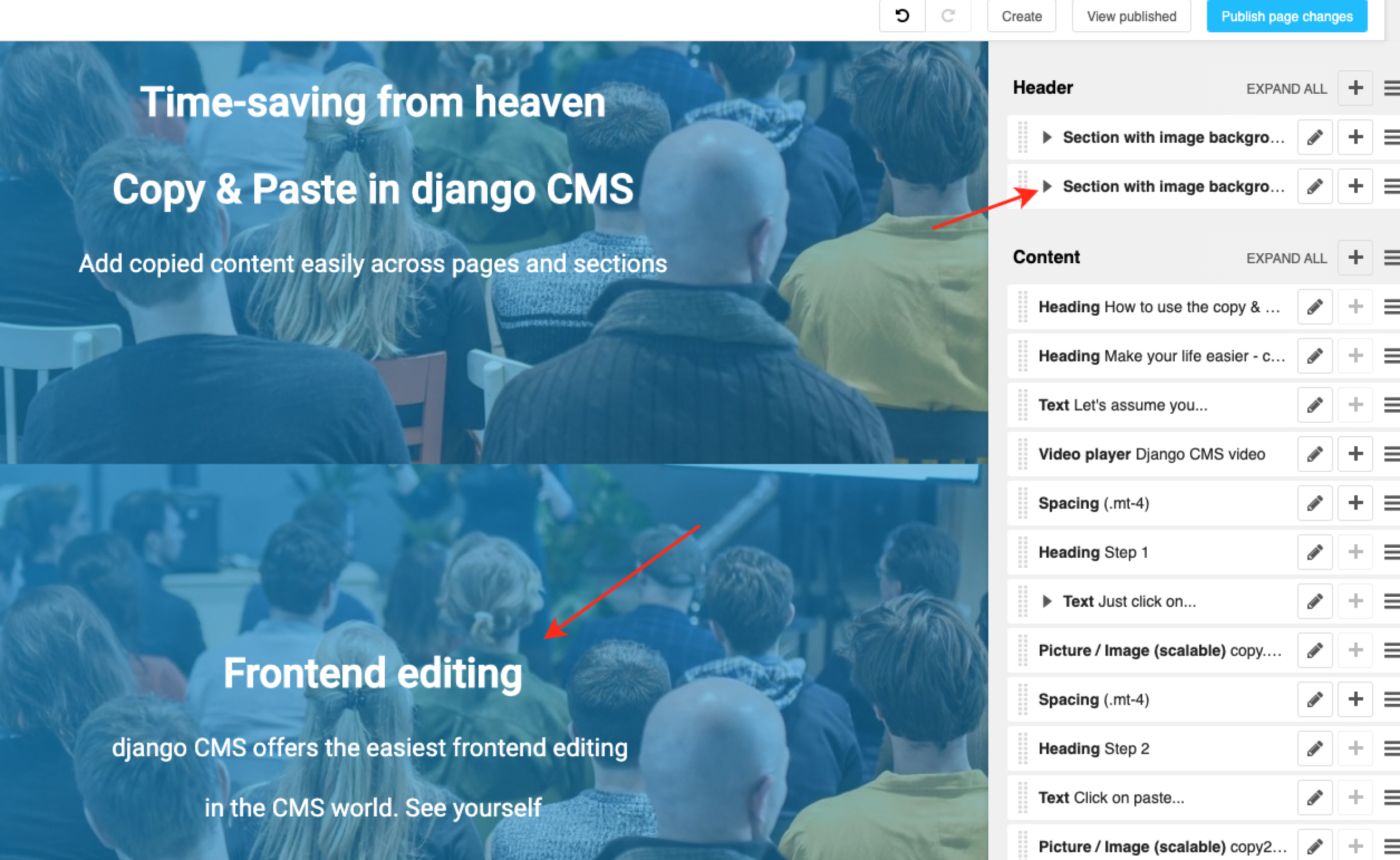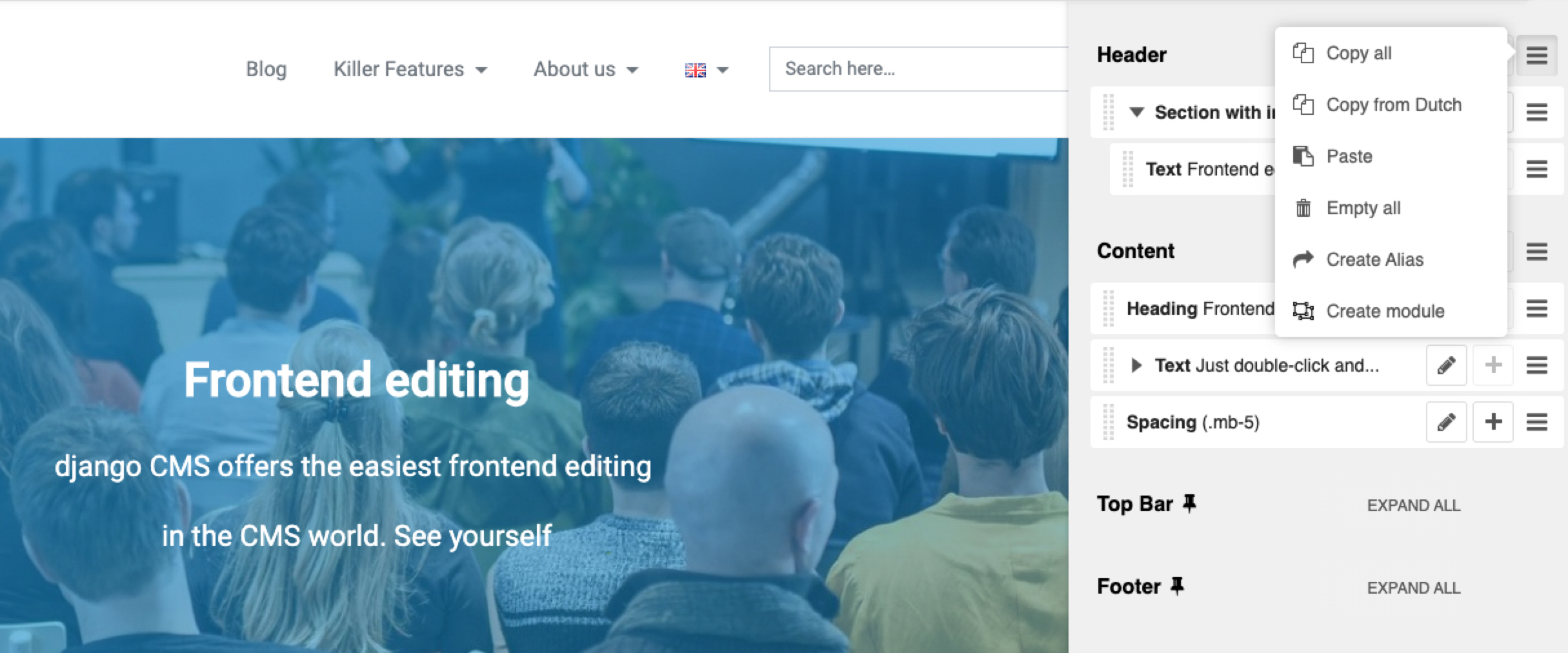 In our example we copy the entire header from the frontend editing page